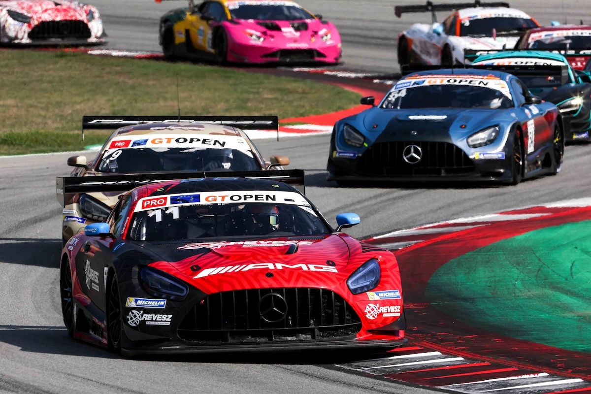 The battle for the GT Open remains completely alive, as the two top contenders took first and second in a very warm afternoon in Race 1 at the Circuit de Barcelona Catalunya. Championship leader Levente Révész conquered the fourth success of the season, the third together with Maxi Götz, in the Motopark Mercedes, right ahead of direct rivals, Simon Reicher and Christopher Haase in the Eastalent Racing Audi. Révész extends to six points his advantage in the standings. Third in the race were Anthony Bartone and Fabian Schiller, in the GetSpeed Mercedes.