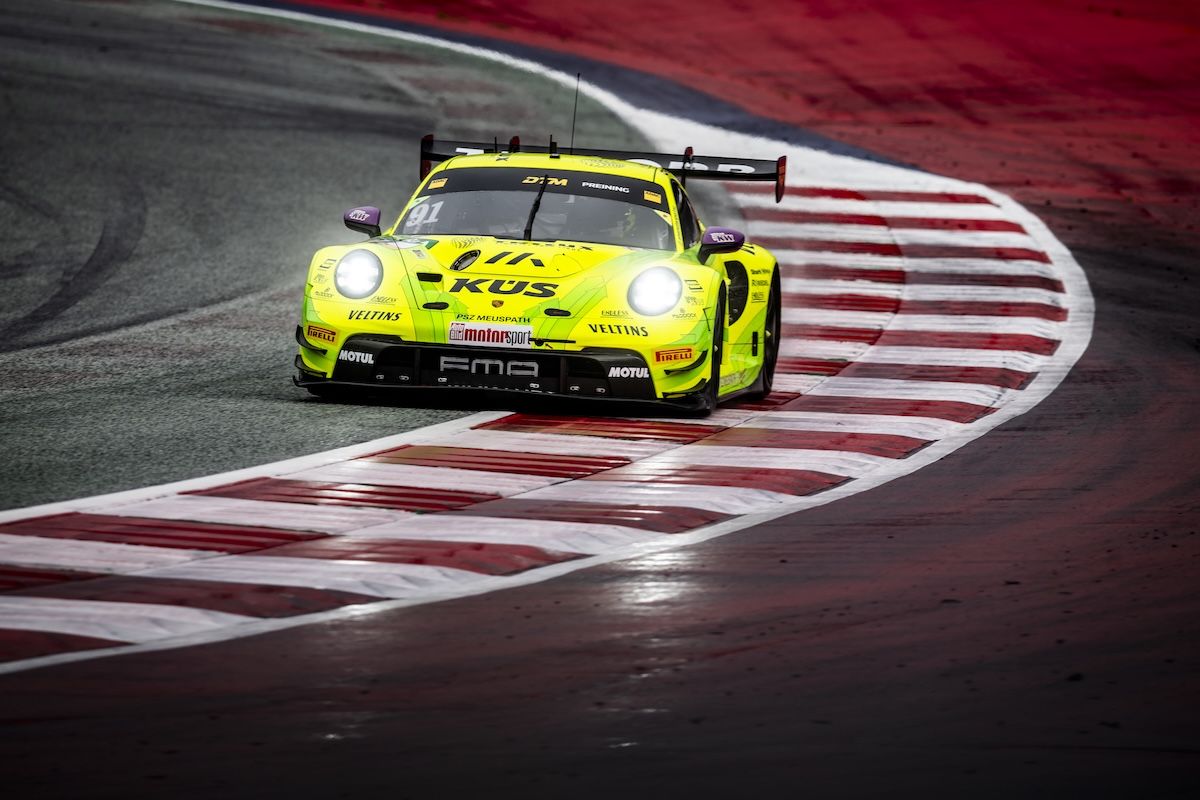 Heavy rain made for difficult conditions at the start of the penultimate race of the season at the Hockenheimring. Lap one saw pole-sitter Ben Green (GB/Emil Frey Racing) concede the lead to his team-mate Jack Aitken (GB) after a mistake under braking. Shortly after, he was also powerless to prevent Preining from passing him. The Austrian then took full advantage of his strength and that of the 911 on a wet track. He pulled off a skilful manoeuvre on lap eight to take the lead, and then set fast lap times as he pulled clear of the opposition. Feller and Schuring also passed Green, who found himself in freefall. Jordan Pepper (ZA/TGI Team Lamborghini by GRT) also endured a disappointing race: the Lamborghini racer was forced out of the race on lap four after a collision with another car. However, despite dropping to sixth place in the table, he is still among the drivers in with a shout of winning the title. Preining was the last driver to come in for his mandatory pit stop, and he returned to the track with a lead of roughly ten seconds over Aitken. The 27-year-old continued to dominate from the front in the closing stages and, after 32 laps of racing, took the chequered flag and the race win. Aitken, on the other hand, was unable to match the pace of the front-runners after the tyre change, and was passed by several rivals. The final order behind Preining was as follows: Feller, Schuring, Maro Engel (Monaco/Mercedes-AMG Team Winward Racing), Ayhancan Güven (TR/Manthey EMA) and Aitken. The battle between Schuring and Feller was particularly spectacular: the Porsche youngster attacked the Swiss driver on the final lap, but Feller was ultimately able to hold onto second place by a mere 0.11 seconds. Behind sixth-placed Aitken was René Rast (Bregenz/Schubert Motorsport) in seventh place in a BMW M4 GT3 Evo. The three-time DTM champion is third in the overall standings, still well-placed ahead of tomorrow's final race. Nicki Thiim (DK/Abt Sportsline) produced an impressive display in the Lamborghini Huracán GT3 Evo2 to finish eighth, ahead of fellow Lamborghini driver Luca Engstler (Kempten/TGI Team Lamborghini by GRT) in ninth place. Green completed the top ten. Ricardo Feller: "We want to end the DTM season on a high, and what better way to do that than with a podium at the finale. The key to finishing second was primarily to avoid taking any unnecessary risks in these difficult conditions. I am proud to achieve a result like this, even carrying the 20 kilos of success ballast from the Red Bull Ring." Morris Schuring: "A podium in the DTM has been my big goal since the start of the season. As such, it is particularly nice to have finally achieved that goal at the finale. When battling with Jack Aitken, I was aware that I was racing against a title contender. I did not want to risk taking him out, so I remained patient and then overtook him in front of the fans in the Sachskurve. One lap more and I would probably also have overtaken Ricardo Feller."