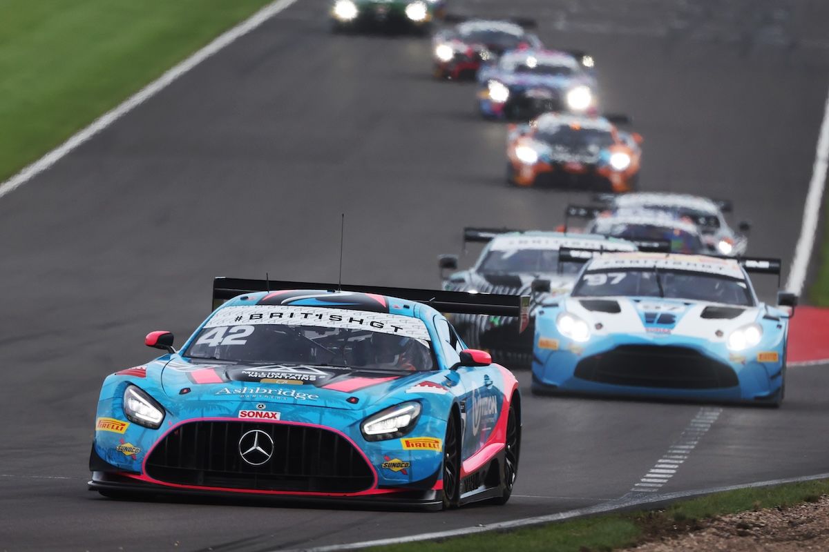 Intermittent rain showers made for tricky conditions on slick tyres before the stops when Dawson – who moved up to third early on – had two moments that could have ended in disaster. The first involved Giacomo Petrobelli at the Old Hairpin where side-by-side contact and both cars spinning was ruled a racing incident, before Dawson turned Morgan Tillbrook around at Coppice. The latter earned his 2 Seas Mercedes-AMG an additional 10-second penalty during its pitstop on top of the maximum Compensation Time accrued for winning at Brands Hatch.